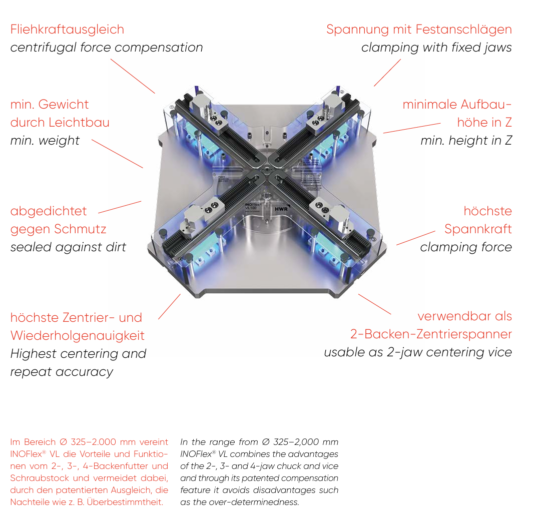 Sie möchten grosse, runde, rechteckige oder unförmige Werkstücke effizient und sicher spannen? Dann ist INOFlex®VL von HWR Spanntechnik die ideale Lösung für Ihre Bearbeitungszentren.